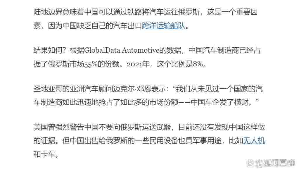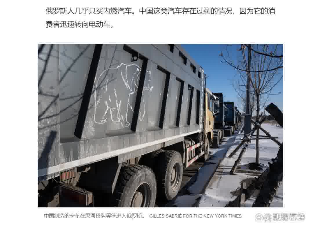 这大概是我过去半个多月来在西方媒体上看到的最下饭的一篇文章了。12月21日,咱们的老熟人《纽约时报》中文网刊登一篇题为《对俄贸易激增、抢占汽车市场:中国如何从俄乌战争中获利》的文章。相信光听这个标题大家应该也能想象出来,《纽约时报》中文网那帮香蕉人编辑在编译这篇稿子的时候,那副眼睛红得简直快要飙血的神情。