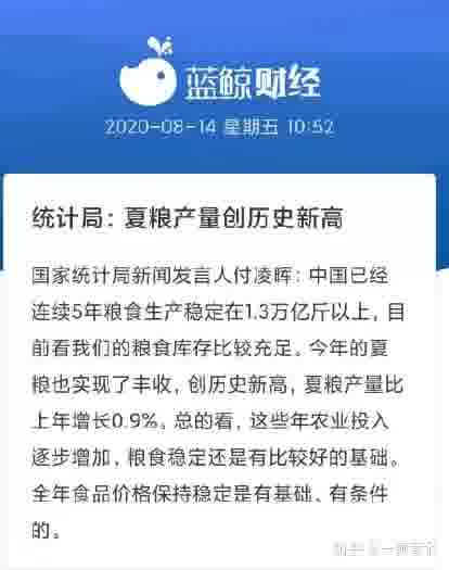 并不是。恰恰相反,中国的夏粮生产刚刚报喜,创了历史新高。