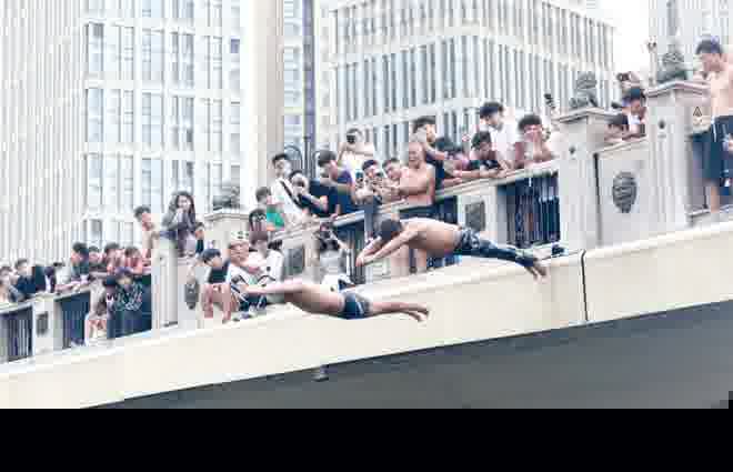 之后,越来越多人加入了跳水和围观的队伍。里三层外三层围在桥边的,和手机屏幕前乐得龇牙咧嘴的,都是无法肉身跳水,却在精神上无比向往跳水的年轻人。