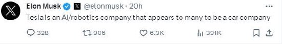 马斯克在这条帖子下回应称:“特斯拉是一家 AI / 机器人公司,虽然在很多人看来是一家汽车公司。”