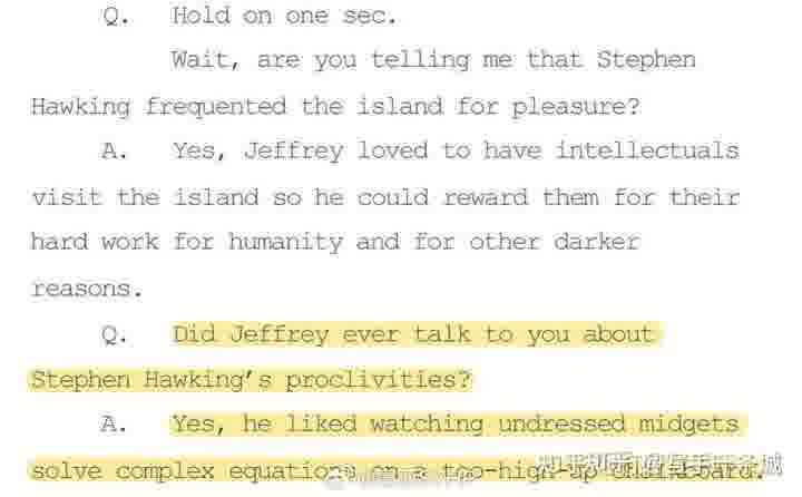 而且记录中还显示,霍金不仅参加了一个未成年的群趴,他的爱好是喜欢看不穿衣服的侏儒在高高的黑板上解复杂的方程??