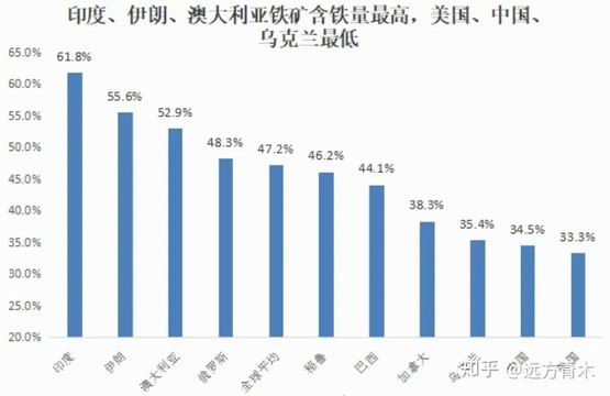 澳大利亚的铁矿平均含铁量高达52.9%,而印度的铁矿平均含铁量甚至高达61.8%。