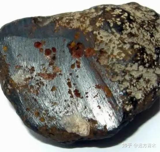 再来个直观点的介绍,这种铁矿石切开后的剖面,是下面这样的,不需要任何冶炼都能寒光闪闪,完全就是包着一层石皮的铁疙瘩。