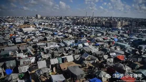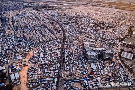 因为以军攻打加沙北部时,勒令所有巴勒斯坦人逃往南部,加沙大片建筑被炸为废墟,230万人口中85%无家可归。小小的拉法,涌入了100万巴勒斯坦难民,是原先人口的五六倍,很多人蜷缩在帐篷或沙漠中。