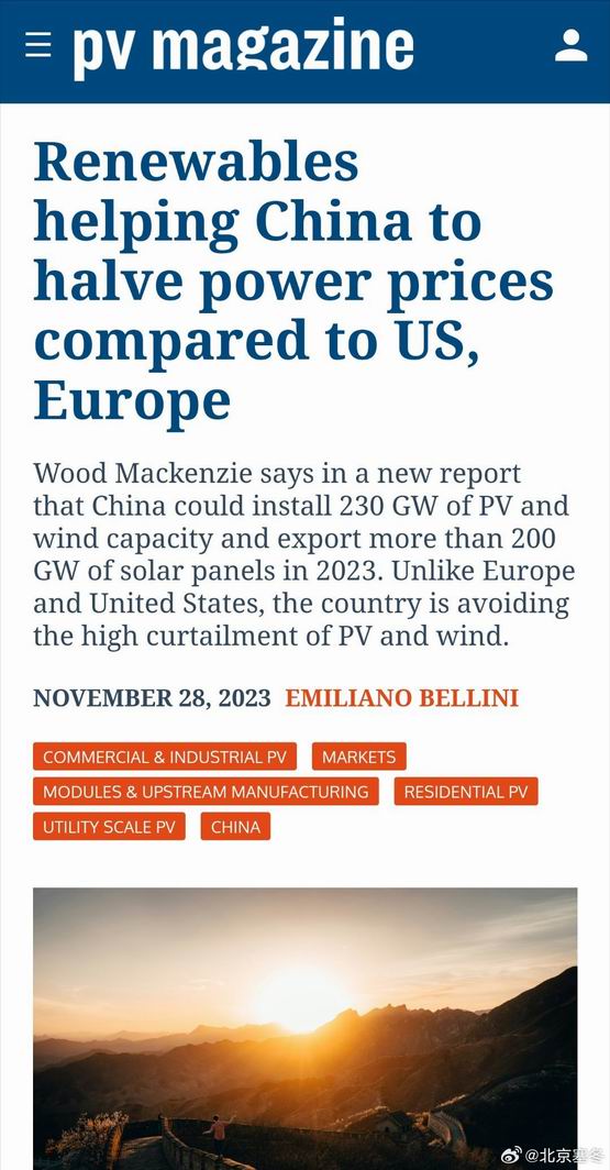 如果说美国有充沛的石油天然气资源,那越来越廉价的太阳能就是我国未来能源总量和价格优势的基石。