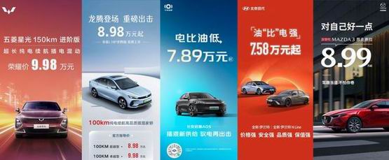 新款秦 PLUS 插混上市的当天,五菱星光、长安启源 A05、吉利帝豪 L Hi?P,北京现代全新伊兰特,这些直接对手也火速跟进,打出的口号更是火药味十足。