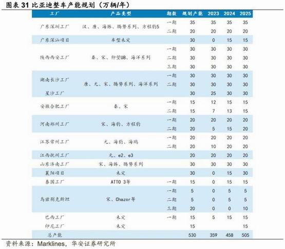 根据华安证券的测算,比亚迪 2023 年产能约为 359 万辆,今年将会增加 100 万辆。对比亚迪来说,想保证较高的开工率并不容易。