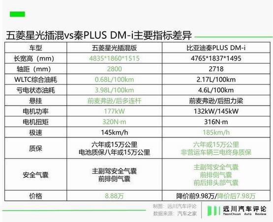 五菱星光与比亚迪秦 PLUS 的产品力互有长短