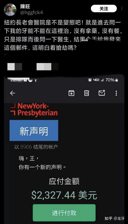 他跑去看牙医,医生往他嘴里瞧了瞧,不说开药了连诊所的诊疗椅都没让他坐一下,收费2327.44美元。