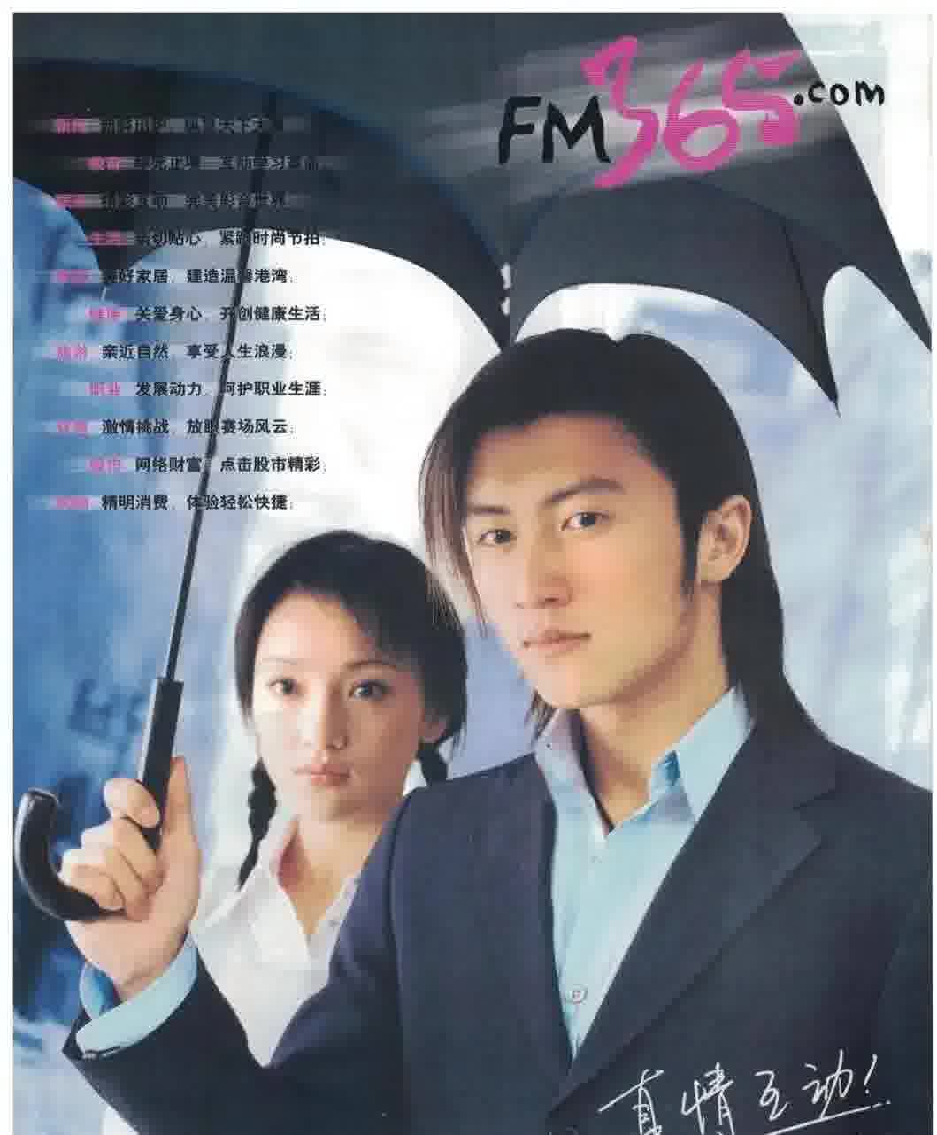 2000 年最红的明星是谁?是唱了《谢谢你的爱 1999》的谢霆锋,是演了《大明宫词》的周迅。FM365 直接请到两人代言,街边铺天盖地都是他俩的路牌广告。