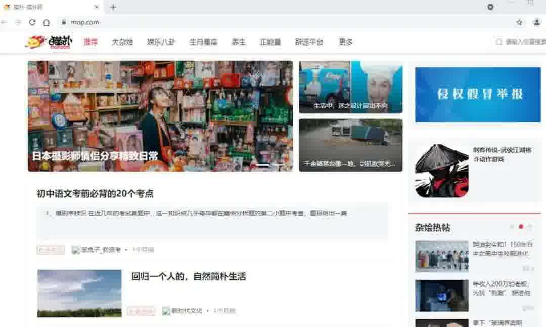 ●猫扑首页。“人肉搜索”“不要崇拜哥,哥只是个传说” 等网络用语源自这里