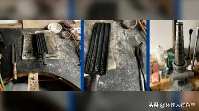 加拿大警方查获的熔炼锅、铸件和模具,用于改变金条形态。