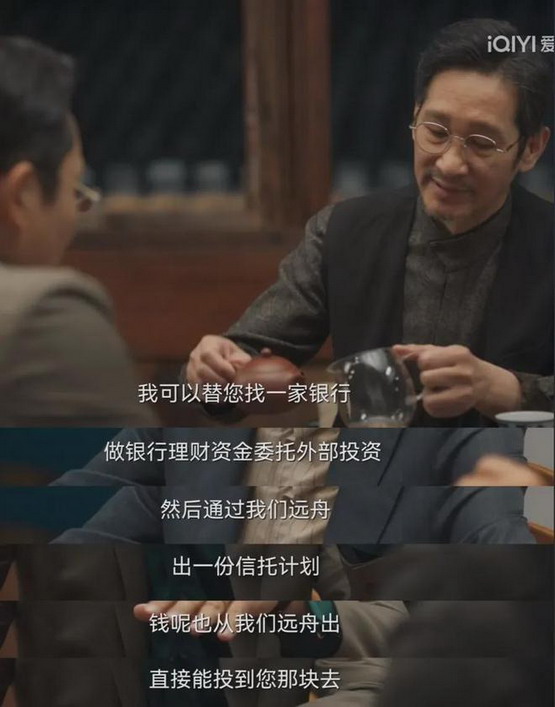 然后他们银行针对高端客户发售信托产品,获取大额理财资金,再委托给远舟信托进行外部投资