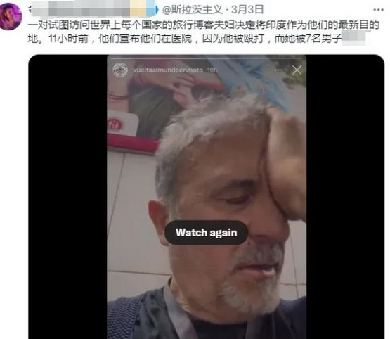 没想到就在大家逐渐淡忘此事的时候,这对受害人再次出现了。他们在油管上发布了名为《印度蒙难记》的视频,记录了他们在印度的悲惨遭遇,时间长达一个小时。