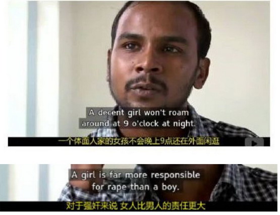 主犯之一在采访中全无悔意,扬言:.“体面的女孩不会晚上.9.点还在外面闲逛……?对于强奸来说,女孩的责任比男孩更大。”