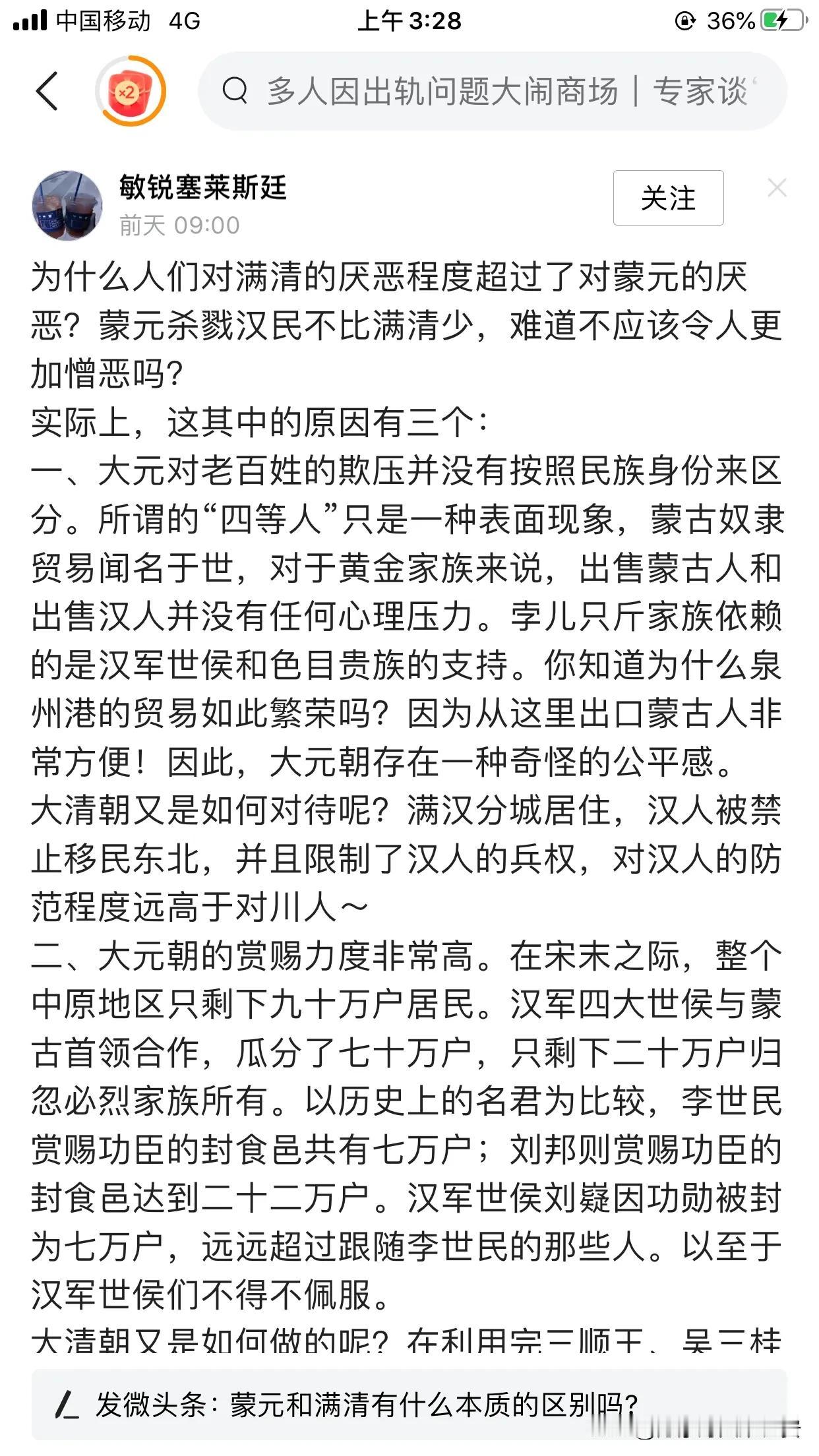 网友问:为什么人们对满清的厌恶程度超过了对蒙元的厌恶?