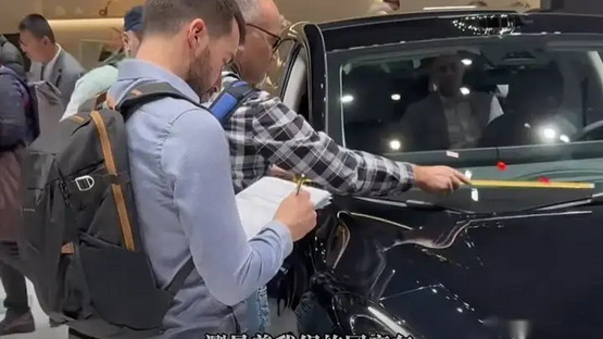 ▲外国人拿皮尺测量国产车,并记录在表格上
