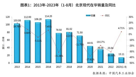 自从起亚、现代在中国建厂之后,曾经有过一路狂飙的阶段,比如2016年现代就取得了中国市场114万辆的成绩。但此后,韩系车开始在中国市场直线下滑,2022年,现代销量跌到只有16.9万辆,已经完全沦为了中国市场的小透明。