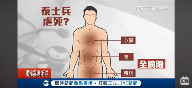 泰国官方解释说,拿走脏器只是为了确认死因。