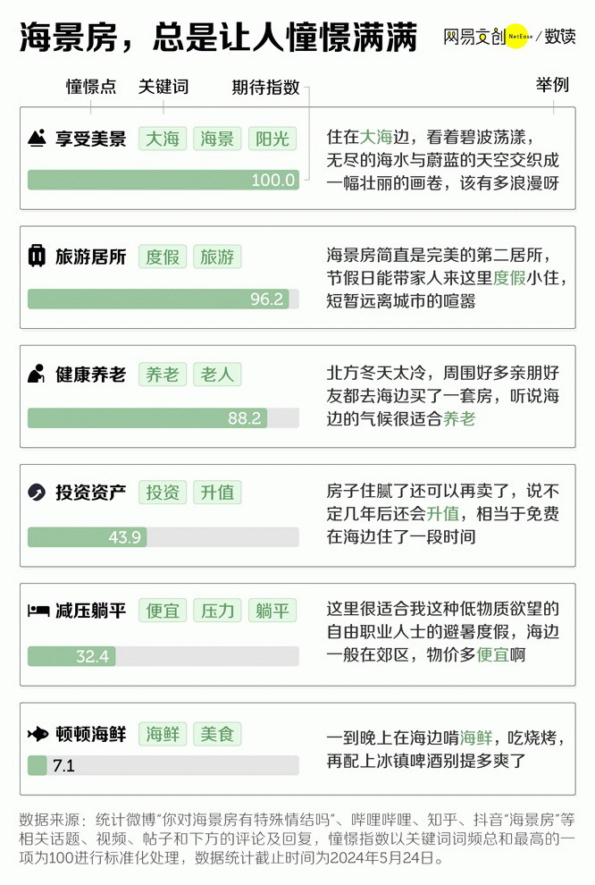 这样的想象,成功让海景房与旅游度假深度捆绑,也在许多人内心深处种下了 “有生之年,如果能拥有一套海景房就好了” 的种子。