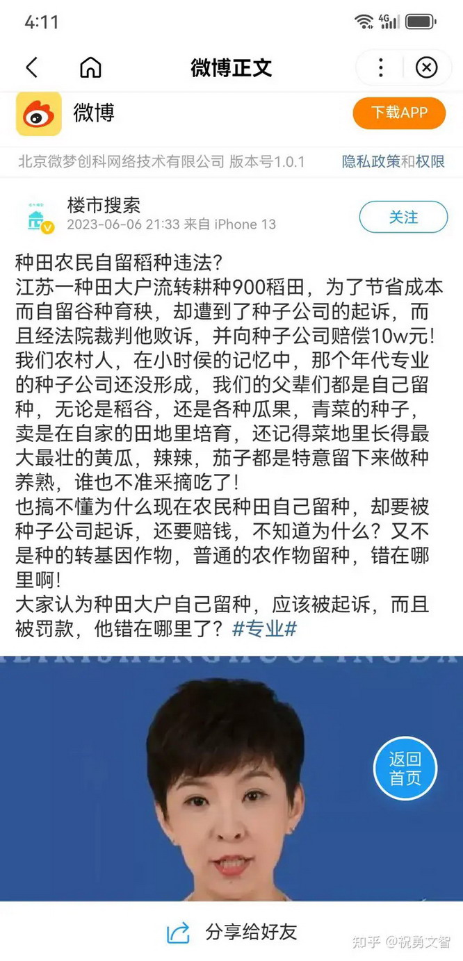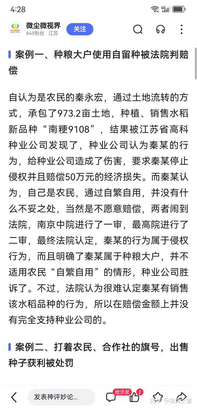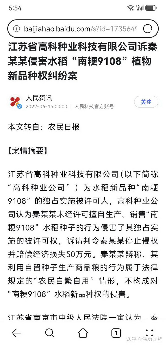 最近在多个平台上看到“江苏农民自留水稻种子被判罚赔偿10万元”的自媒体报道。