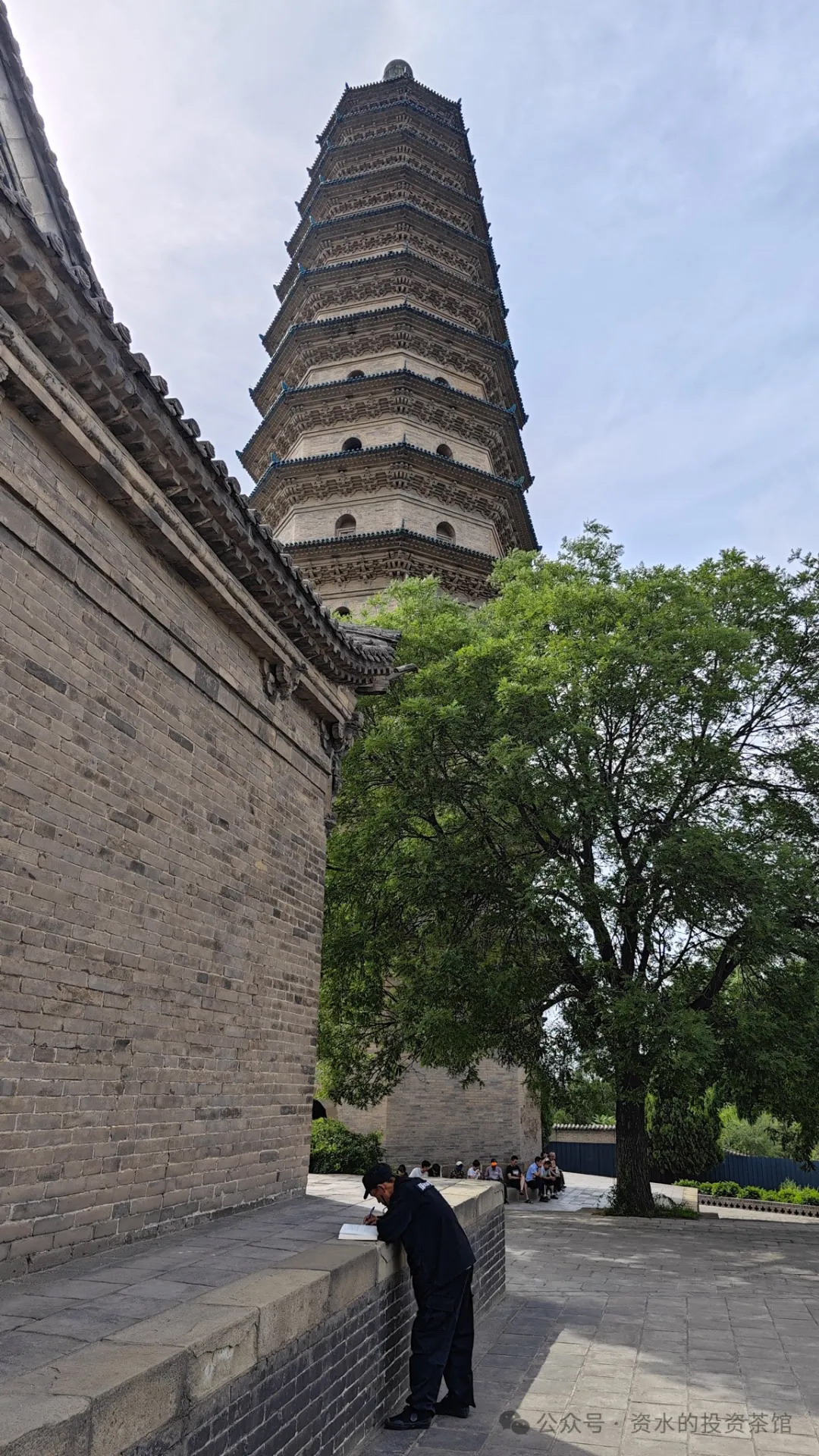 明朝万历年间修的塔,太原地标建筑。50 多米高,古代修这么高塔可称得上摩天大楼了。一位保安在抄佛经,我过去跟他聊了很久,跟他聊金刚经,地藏经。他说他以前很狂(看面相有凶相),修了地藏经,想通了很多道理,现在为人已经大变样了。
