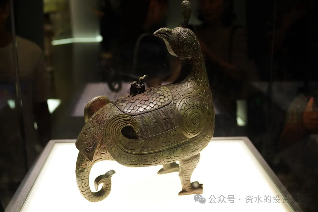 山西博物馆的镇馆之宝,博物馆的 Logo 也是它。第一代晋侯的随葬品,公元前 1000 的物件了。上半截是青鸟,下半截是大象,十分精美。盗墓贼用炸药炸开墓室,鸟尊就在正下方,被炸成 200 多片,盗墓贼懒得要。后来请北京大学的考古教授来挖掘,把碎片交给上海博物馆修复,没想到修复出来居然如此精美。修复后三家发生争执,北京说是我挖的,上海说是我修的,山西说是我地界出土的,都想留下来。最后还是鸟尊肚子里一行铭文决定了去向,铭文大意是 "晋侯造鸟尊用于晋国祭祀",于是宝贝留在了山西。鸟尊是我国第一批一级甲等文物,永远不得出国。