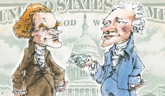 这在今天看起来匪夷所思,但当时的确如此。当时的美国分成两派,一派以开国元勋、《独立宣言》执笔人托马斯?杰斐逊为代表,提倡 “以德治国”,他认为效仿英国发展制造业,会引发 “道德败坏”,所以一度想把美国建成一个 “以自耕农为主体、原始朴素、田园牧歌式的农业共和国”。