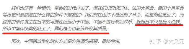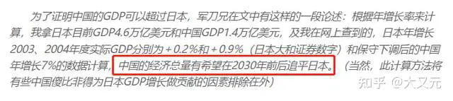 甚至还有非常专业的网友,从人口、改革、工业环境等角度发长文《驳雪亮军刀2030年中国GDP将超越日本的谬论》,文章中总结,中国赶超日本就是痴人说梦,即便有一天真的赶上了,我们是否也应该怀疑其质量。