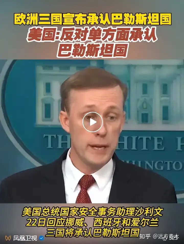 美国总统国家安全事务助理沙利文在22日表示,美国反对单方面承认巴勒斯坦国。