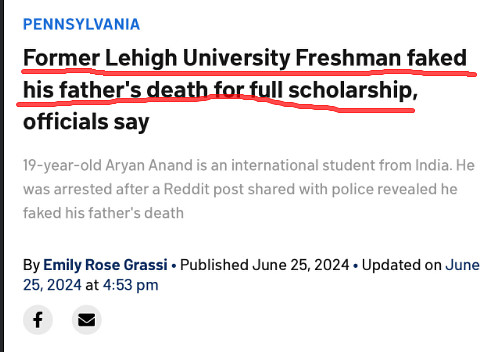 @包容万物恒河水:最近,一名印度学生 Aryan Anand 被美国警方逮捕,因为他伪造了印度成绩单、推荐信、州考试成绩,并通过他购买的用于申请大学的印度学校域名向美国的大学发送这些信息。