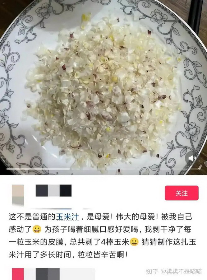 她说,这样孩子比较爱喝。这次总共剥了4颗玉米,花了不少时间,自己也觉着这样做好感动,自己好爱孩子,真是伟大的母亲。