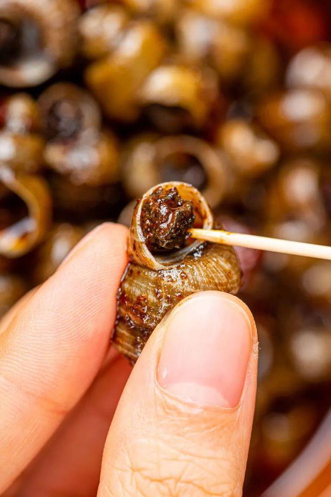 虽说田螺在河湖、田野间唾手可得,吃螺却是一桩精细的活计,烹饪前用老虎钳夹掉田螺尾尖部、放在装了水的面盆里充分吐沙,都是事前必要的处理步骤,如此烧出来的螺才能保持洁净、没有土腥味;除此之外,爱螺之人还需要懂得辨认田螺的 “真身”,近年来各地关于误食福寿螺的新闻频出,引得大家 “闻螺色变”,其实经过高温处理的正常田螺并无食用风险,而且福寿螺跟普通田螺的形态也相差不小(田螺螺口小,尾椎长而尖;而福寿螺螺口大,尾椎短而钝),所以,细心辨别外观,就能远离 “阿福”,纵享口福了。