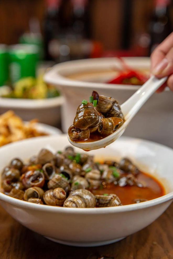 不仅各地的田螺有所区别,不同地域人民的嗦螺姿势也相去甚远,江南人民独爱明前螺的清鲜,湘赣一带钟爱深夜嗦螺的热辣风味,而脑洞最大的广西人,创造出了螺蛳与酸笋的 “最佳 cp”……. 田螺身量虽小,却容得下大江南北的万千风味。