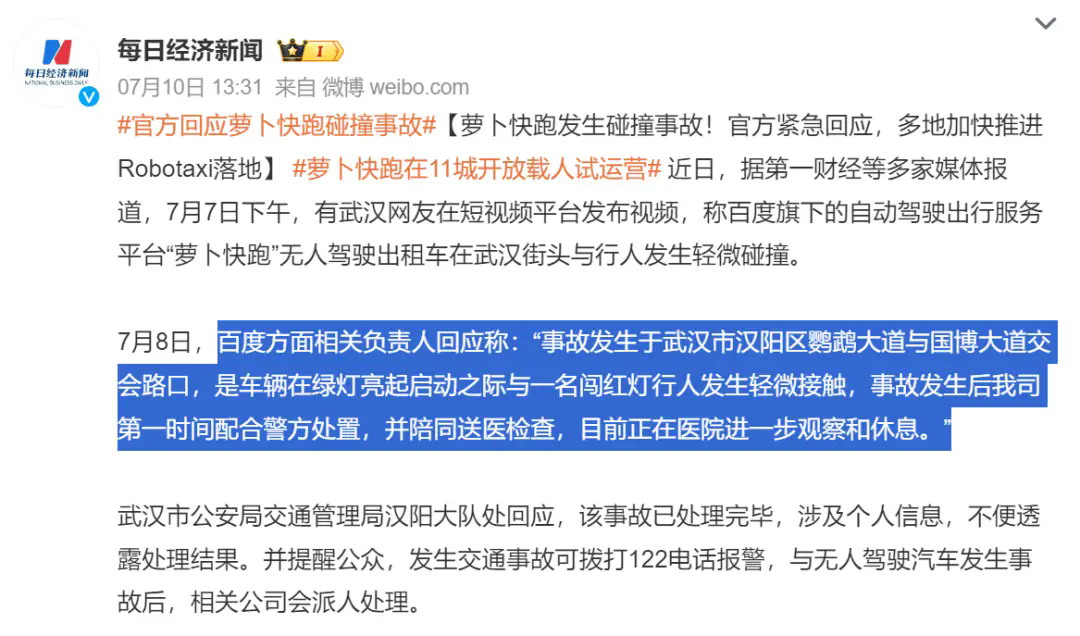 这两天无人驾驶出租车在湖北武汉撞了个行人的事,大伙或多或少应该都刷到了吧。