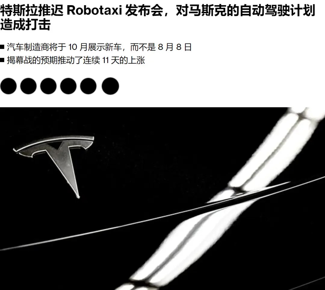 当然,嘴上说说容易。毕竟今天还有一则热乎的消息,那就是原本预计 8 月 8 号要跟大伙见面的特斯拉无人出租车,因为种种原因得往后跳票两个月了。