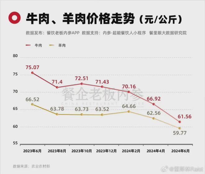 牛羊肉已经连续半年下降了,现在的牛肉,可能是近些年来最便宜的时间。盒马 59.9 元可以买 3 斤牛腩,一斤还不到 20 元。记得我小学时候牛肉就要 18 元一斤,那会我爸月薪只有 1000 元。结果现在居然还能用差不多的价钱买到牛羊肉。