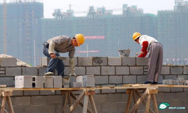 江苏淮安,失去土地的农民工在房地产建筑工地上工作。