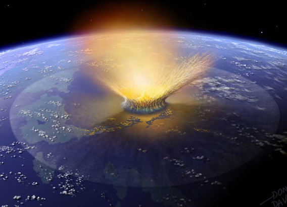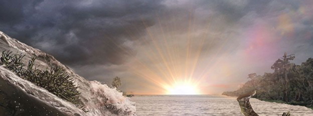 6500 万年之后,地质学家从地层岩石的沉积物中得知了当年发生的恐怖的一幕,一颗小行星撞进了尤卡坦半岛附近的海里,引发了强烈的地震和海啸,如山一般高的海浪甚至推进到了北美洲内陆几千公里处……
