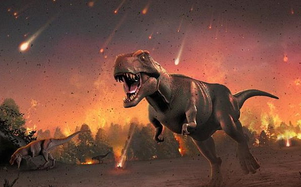 然而一切就这么结束了吗,并没有,我们再回到陨石撞击的那一天,假设你是此时生活在地球背面的一只恐龙,你也感受到了大地强烈的震动,你并没有看到如山一般的海啸,然而却也看到了诡异的一幕,天空中不知何时起,突然出现了无数颗流星,紧接着天空下起了雨,然而当雨点落地时,你才发现这并不是雨,而是熔融的岩浆。你不会知道的是,地球背面的那次强烈的撞击,将上万亿吨的岩石熔化并抛洒到了太空之中,然后又被地球的引力吸回,落到了全球。熔岩所到之处,点燃了森林,大火蔓延,浓烟四起,仿佛整个世界都在燃烧,你和其它的动物一样,吓得四散奔逃,然后,你被烧死了……