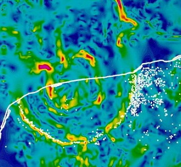 经过了 6500 万年的打磨,当年的陨石坑已经没有任何痕迹了,但是此处的重力场图,依然能看到明显的环形山痕迹。