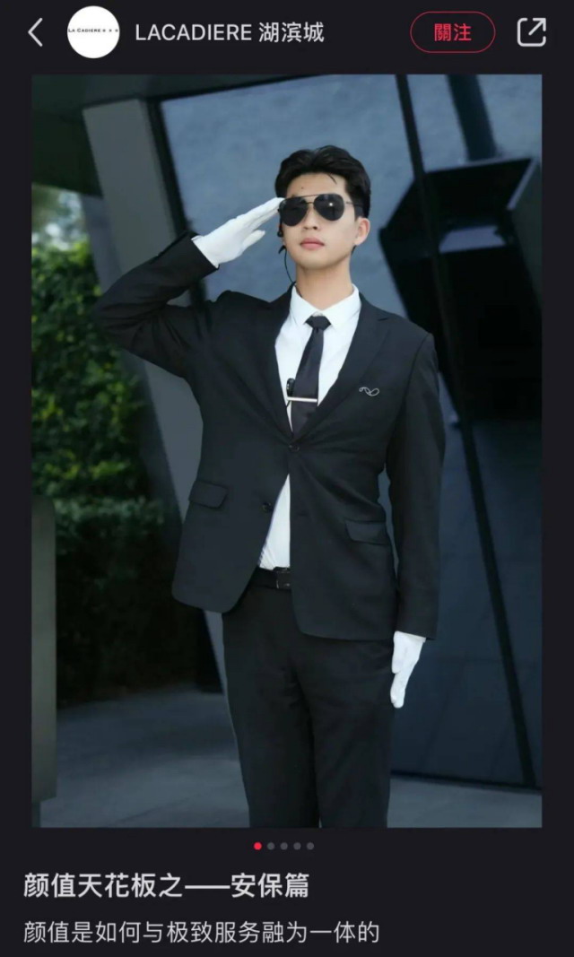 其实形象保安还有另一个更为洋气的职业名称,叫做案场礼宾,一般他们所属的部门也并非是保安部,而是礼宾部。