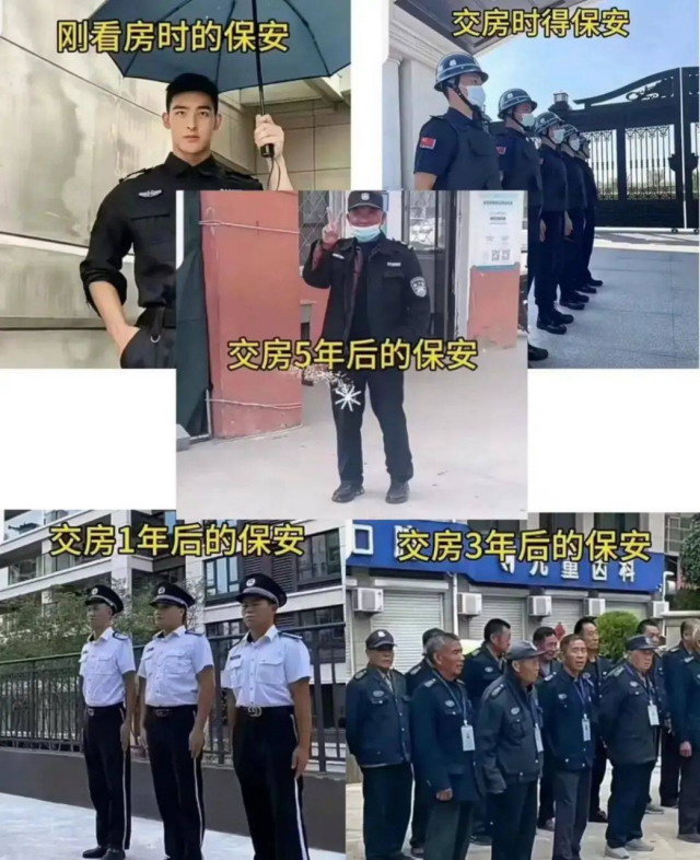有些鸡贼的开发商会在售楼时配上形象保安,过后换成经济型。