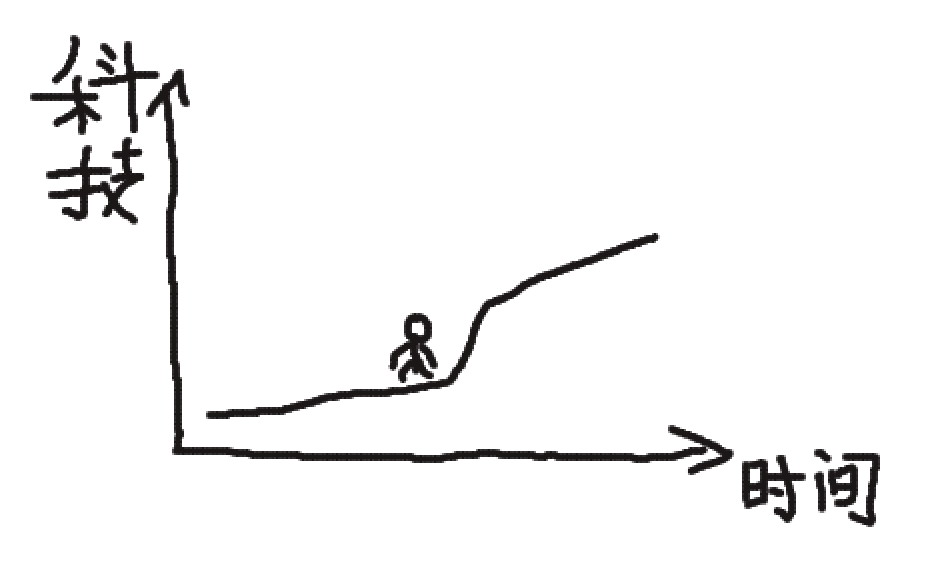 我们来定义一个词叫吓尿单位,就是一个人来到一个陌生的环境直接被吓尿了。当一个山顶洞人突然把他穿越到春秋时代,他就立马被吓尿了。这中间经历过好几万年。而把春秋的人放到秦朝,他会觉得,和我那时也没多大变化嘛,可能需要把他穿到隋唐时期,差不多一千多年,看到大唐的繁华,他才会吓尿。而把唐朝的人穿到民国看到铁路手枪啥的,他会吓尿。而把一个民国时期的人放到现在,立马就尿了。吓尿单位的时间是越来越短的,其实就是科技的发展不是线性的,每一次重大的发明,都能给社会带来质的飞跃。