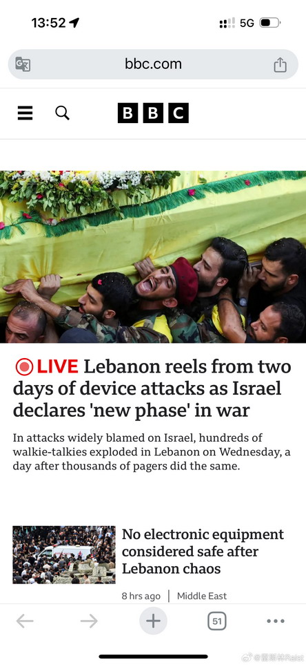 @雷斯林 Raist:1,全世界几乎所有主流媒体,现在的头版头条都是黎巴嫩对讲机、寻呼机爆炸的事情。