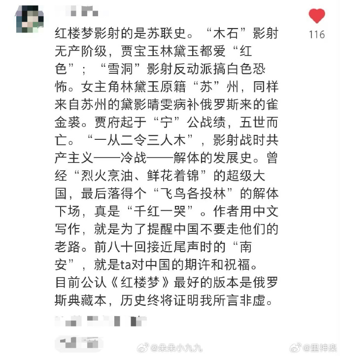 钗嫁黛死的结局,是作者对苏联解体的致敬,而怀金悼玉的立意,是美中双方对苏联的复杂感情;