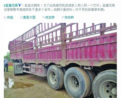 昨日(6日),无锡警方发布最新通报,在“5·29”事故中闯祸,造成“最美司机”吴斌不幸身亡的“致命铁片”来源已初步锁定,是江西宜春一辆东风大货车。无锡警方赴江西宜春的调查小组前日找到该车及司机,发现该车6月1日曾更换一只损坏的制动毂。目前警方正对该车制动毂进行技术鉴定,将第一时间公布结果。