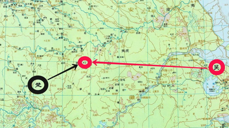 另一次是公元前 518 年,吴国在楚平王东巡的时候,尾随在他的身后,趁其不备一战攻取巢(安徽巢县)、钟离(安徽凤阳)。