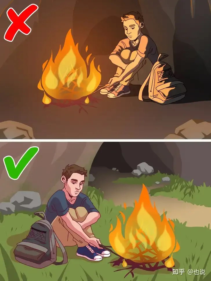 在大部分野外求生手册中,都会用图文表明,山洞中生火是危险行为。