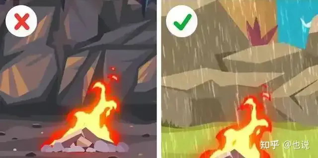 哪怕遇到下雨,也尽量要在靠近洞口的位置生火。